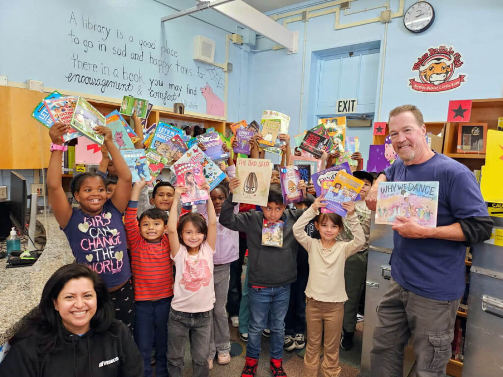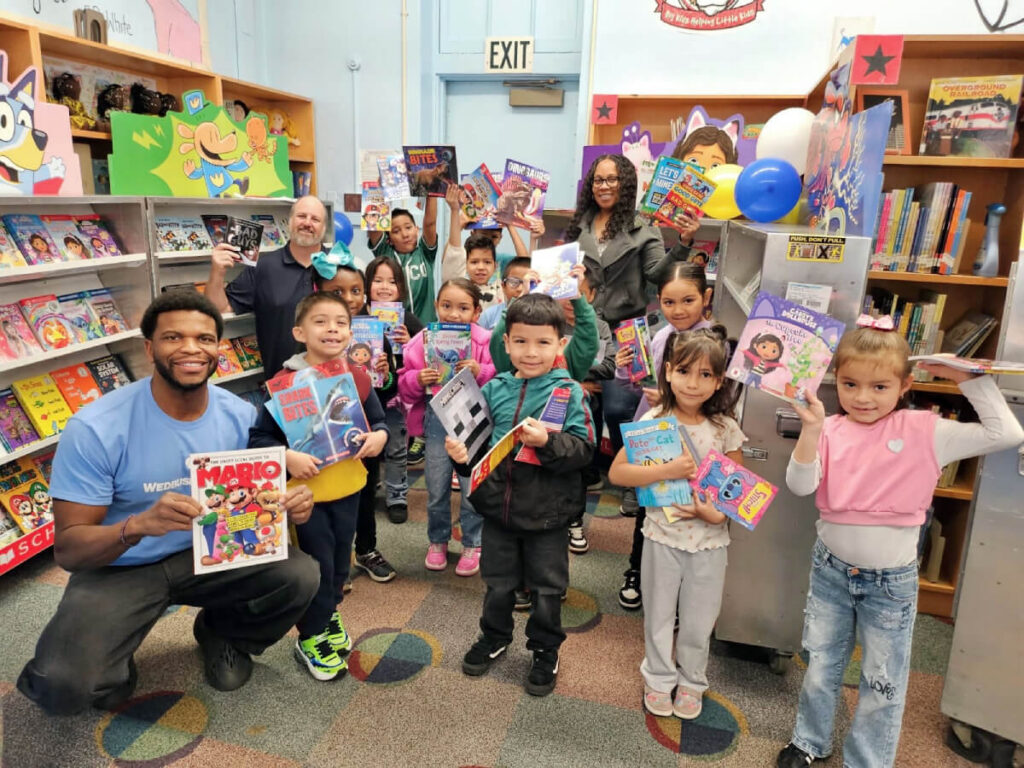 Volunteerism examples: Be a greeter, a classroom book reader, or help students select books during a Wedbush/Scholastic book fair.